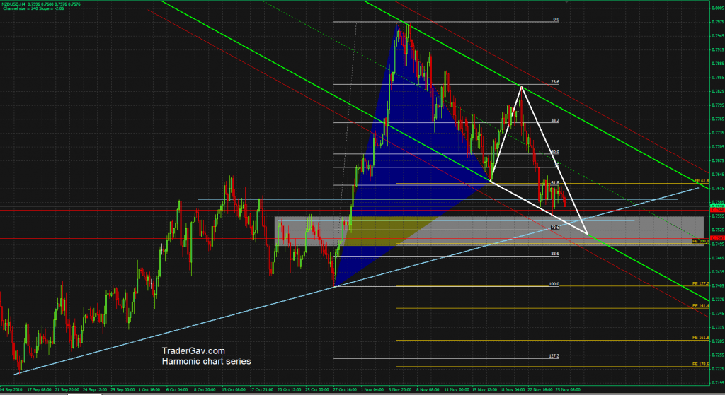 While the NZDJPY setup is still valid, I have another bullish setup found in NZDUSD. Again, I see confluence of Fib levels, support level, bottom of channel as well as my favorite bullish harmonic formation. [tab: Setup 26 Nov 2010] Here is the chart to confuse you. [tab: Update 28 Nov 2010] The reversal zone […]