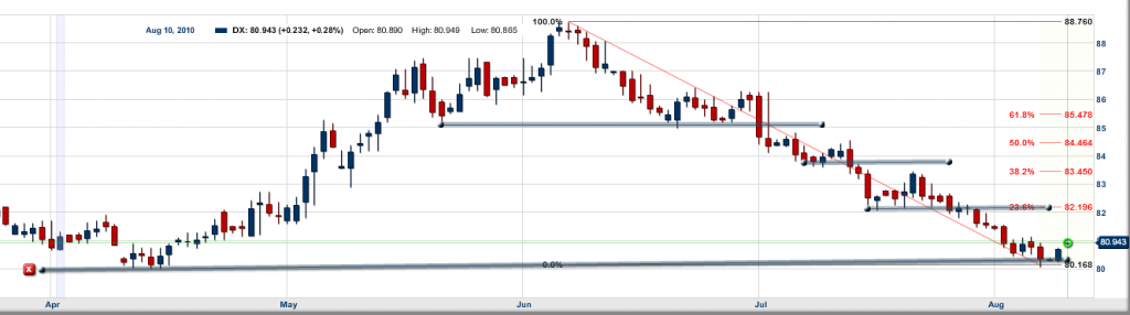 Here is the daily chart of Dollar index (DX). Do you see something interesting here? To me, I am not looking for selling of Dollar at the moment. Chart generated by MarketClub tool. Try it now.