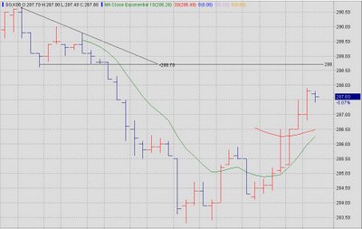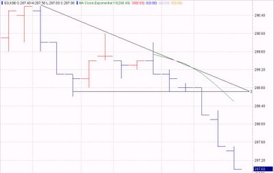 It was nice to have a descending triangle price setup. Short position was taken. Position was established at 288 and closed at 286.1 as trailing stop was triggered. Gain 1.9.