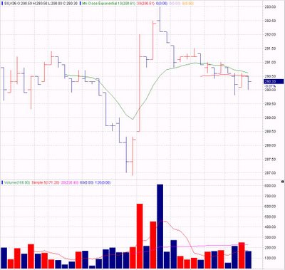 I saw DataCraft and Statchipac as interesting shorting candidate for 24-May-2006. Position has not been established yet. As market tends to be moving sideway. Nikkei is trading is positive territory as well. I would like to watch further before taking any action. Datacraft daily chart statChipac daily chart