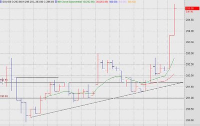 With both HangSeng and Nikkei stays around 200 point gain. I am interested in looking for Long SIMSCI at 292 level. Initial stop loss is set at 290.9 Chart will be posted after position is established.