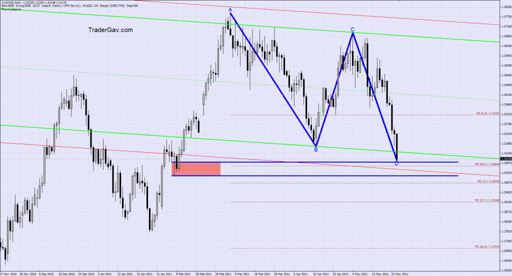 Here is a potential completion of harmonic pattern in $AUDNZD. I am looking at 1.29 for potential short setup. This is a trend continuation pattern, and I am looking at the resumption of existing downtrend. Here is the …. CHART!!