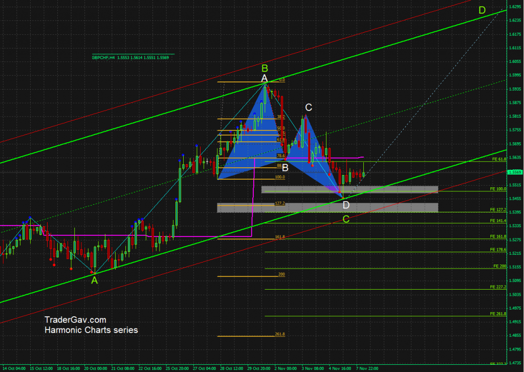 Here is an interesting chart. GBPCHF bounced off the lower channel band, with confluences of Fib extensions and harmonic patterns. I am interested in trading the Long side. OK, I am going to confuse you with this chart. Go figure.