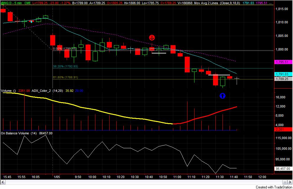 Short position of NQ was established when NQ first pulled back to 18 MA. Stop was moved to break even point after 1.5-R gain. Subsequently, I trailed stop twice to protect profit. Position was closed with 1.83-R gain. Trade summary Short below low of 15th (10:20am) candle @1798.25 which was the first pull back of […]