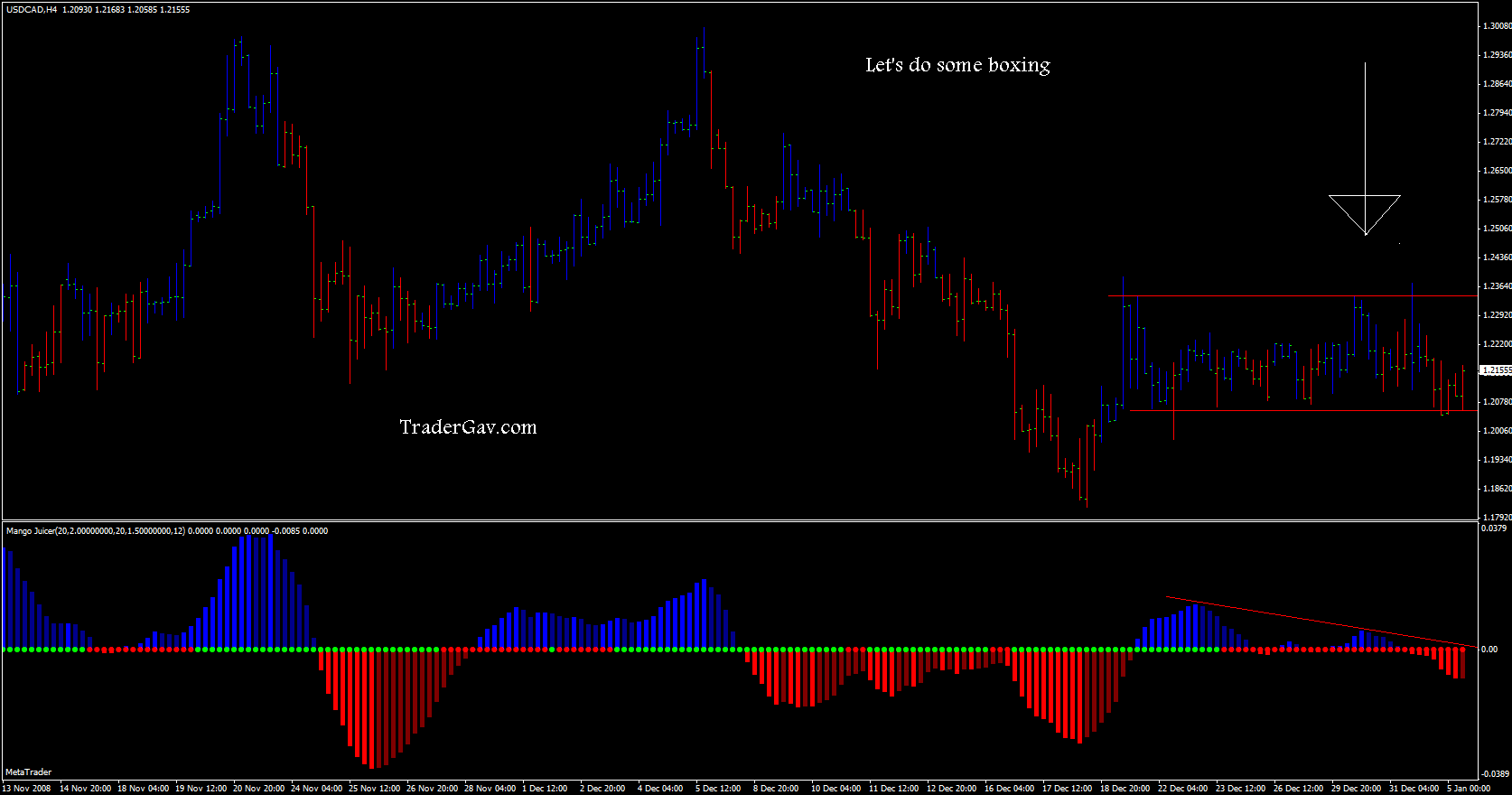 Let’s do some boxing today. Though I am still waiting for the trade signal, I am a little bit of negatively biased. 🙂 USDCAD has formed a pretty nice box with negative momentum in 4-hr chart. Let’s see how it works. (click to view the full chart)